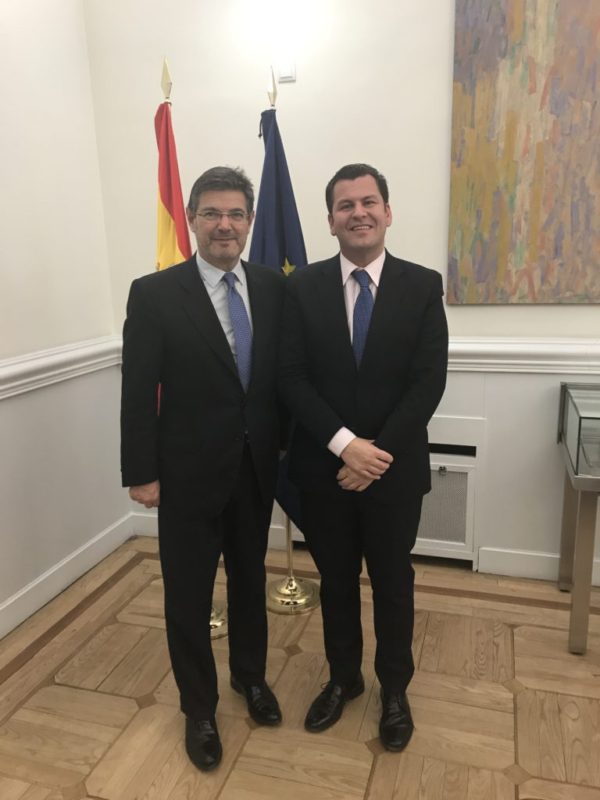 El Presidente del Global Youth Leadership Forum (GYLF), Jacobo Pombo, mantuvo esta tarde una reunión de trabajo con el Ministro de Justicia del Gobierno de España, D. Rafael Catalá Polo, en el que repasaron lo que fue la 2a Edición del GYLF y fijaron las líneas maestras de cara a la 3a Edición del mismo que se celebrará entre los días 14 y 20 de octubre en el Palacio de la Magdalena de Santander.